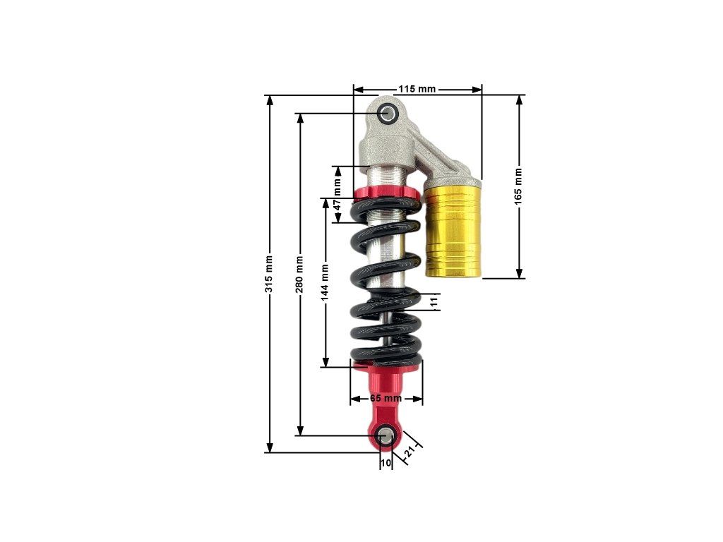 Hátsó lengéscsillapító - 280x11mm versenylevegős - Pitbike