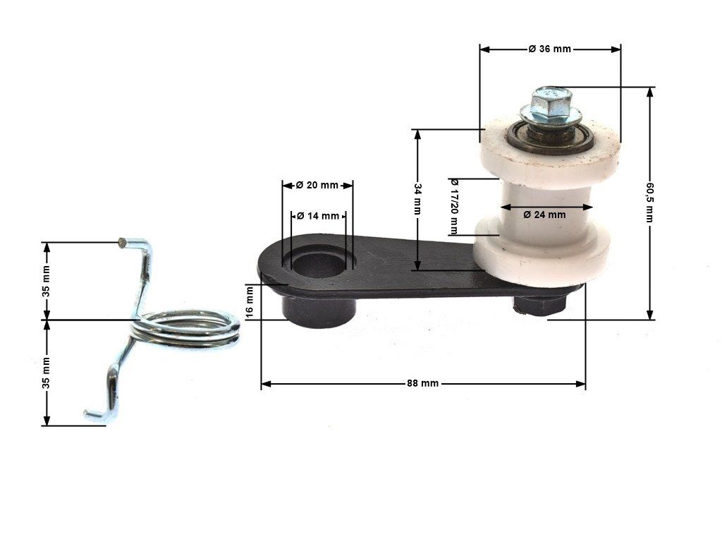 | A rögzítőcsavar és a vezetőkerék közötti tengelyirányú távolság: | 60,5 mm |