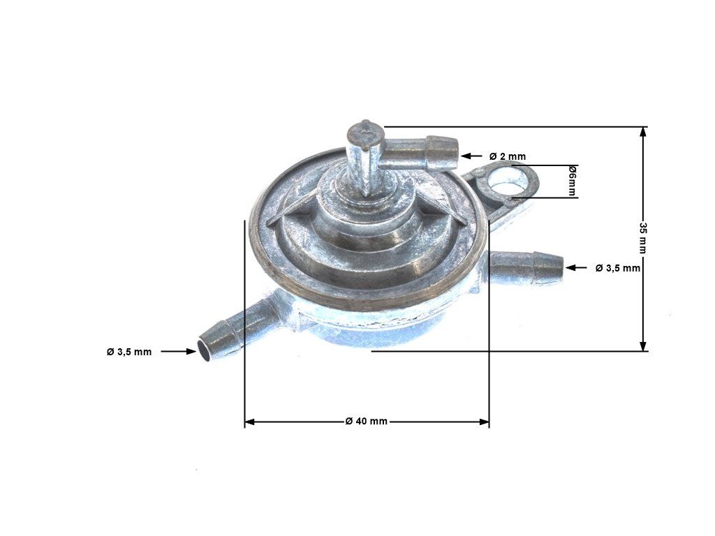 A vákuumos üzemanyagszelep 50 cm³, 125 cm³ és 150 cm³-es motortérfogatú, PD típusú membrános karburátorral szerelt robogókhoz és motorkerékpárokhoz készült. A szelep automatikusan szabályozza az üzemanyag áramlását a tartályból a karburátorba - az üzemanyag csak járó motornál áramlik, ami megakadályozza a karburátor túlfolyását és a benzin szivárgását.